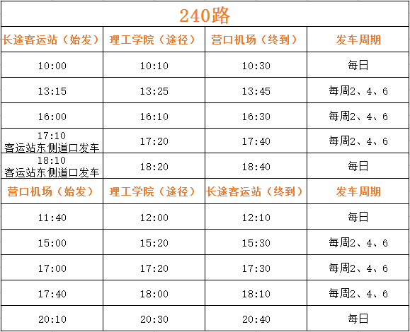 公汽公司從機場辦公室獲悉:從2017年8月1日起,營口藍旗機場開辟“營口—濰坊—西安”新航線。針對上述情況,為方便市民出行,經(jīng)公司研究現(xiàn)提出調整機場240路運營班次。具體內容如下: