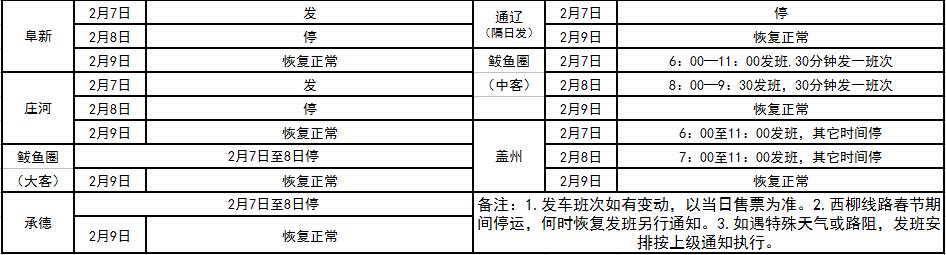 2016年春節(jié)假期班次發(fā)車時間